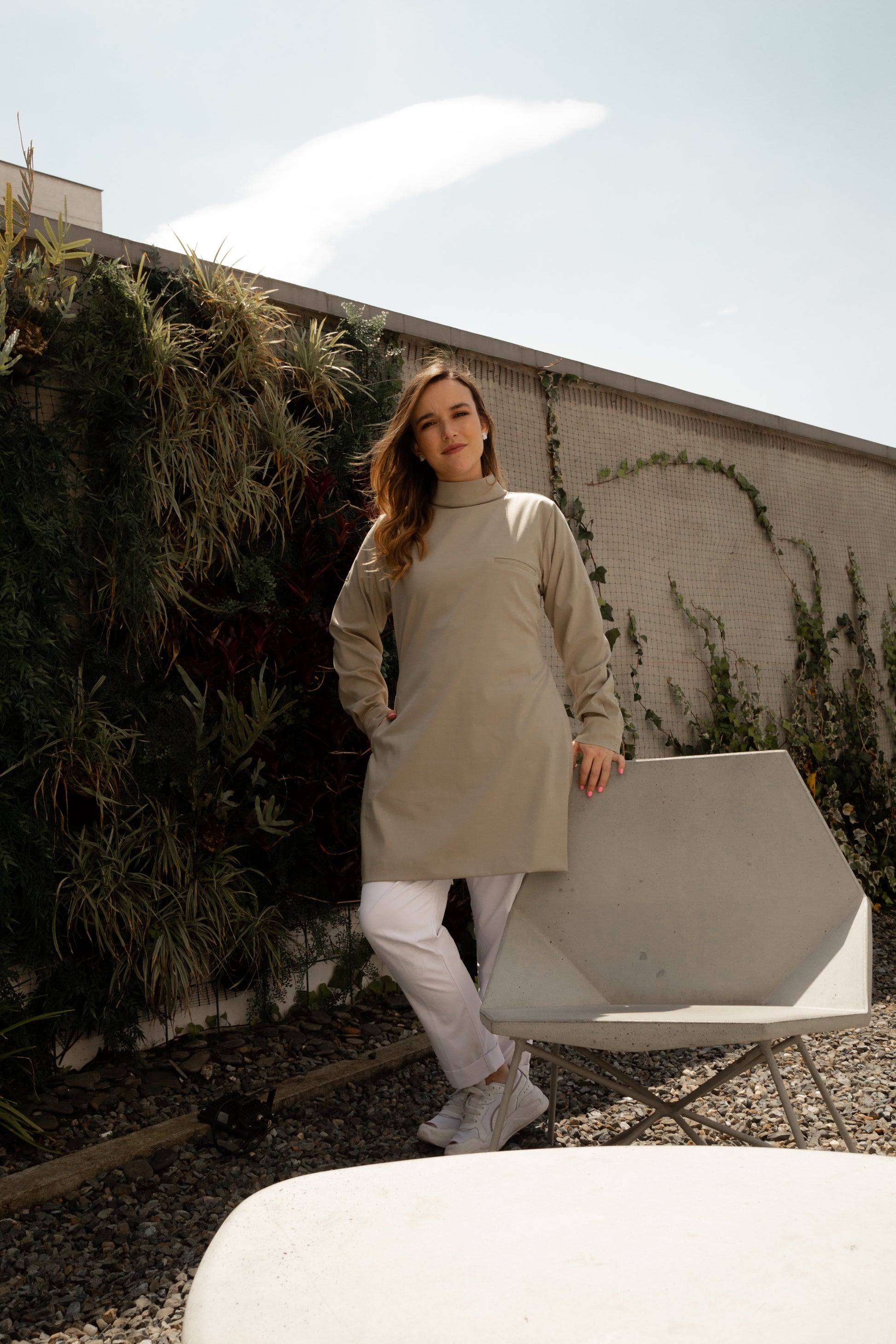 - Cuello alto, con dos broches posteriores que te darán un toque de elegancia